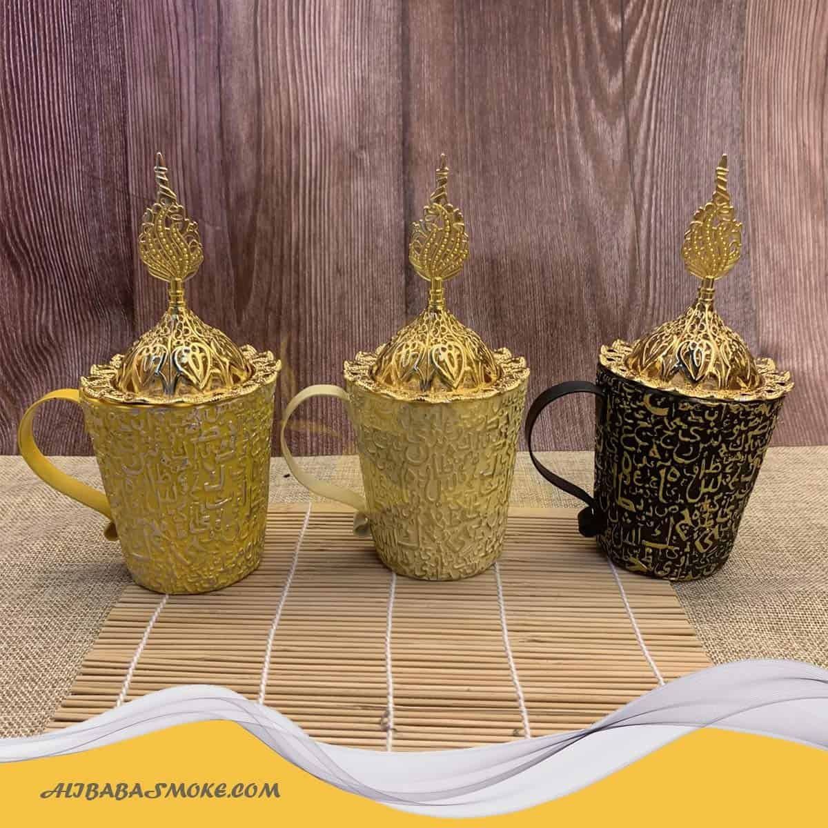 Hot Selling Censer Bakhoor Gold Metal and Black Luxury Middle Incense Burner